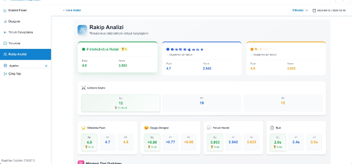 Don't just track your own performance. Compare your business side-by-side with competitors and analyze market positioning, service quality, and satisfaction scores with AI precision.