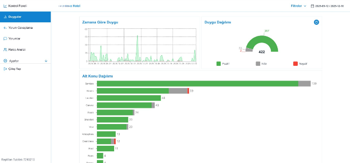 Go beyond star ratings. Instantly uncover hidden topics like "Services," "Rooms," or "Cleanliness" within reviews and visualize their specific sentiment breakdowns to understand the why behind the score.