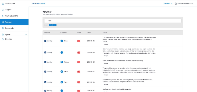 Never get lost in thousands of reviews again. Filter by specific keywords—such as "Staff" or "Breakfast"—to instantly pinpoint relevant feedback and actionable insights.